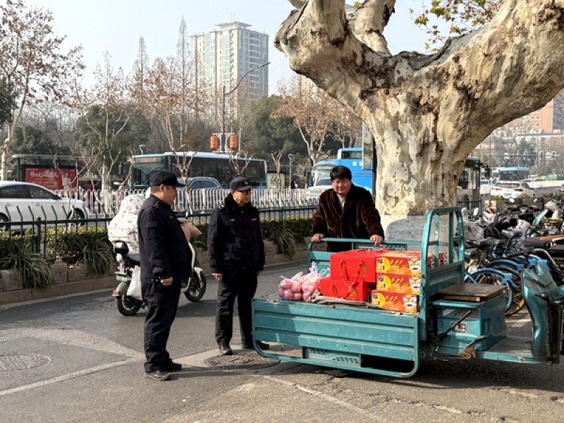 地铁西安门站位于梅园新村街道中山东路与龙蟠中路路口,周边有熊猫万谷金融科技中心、浦发大厦、东部战区总医院等,人流量大,商业活动频繁。流动摊点违规占道经营、电动三轮车违法停放售卖等违规行为时有发生,堵塞该路段交通,影响周边市容环境。梅园新村城管中队主动联系南京市地铁交通设施保护办公室,针对西安门地铁周边存在的市容问题,双方联合开展专项整治行动。