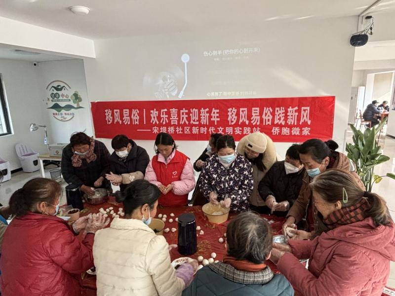 祥龙辞旧,金蛇迎新。为进一步传承发展中华优秀传统文化,暖侨心,聚侨力,丰富侨界群众的节日文化生活,金湖县黎城街道宋坝桥社区“侨胞微家”开展“欢乐喜庆迎新年 移风易俗践新风”包汤圆活动,进一步增进侨界人士的获得感、幸福感、归属感。
