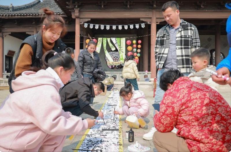 丹青寄情,笔墨抒怀。以梅为题,百名游客执笔挥毫,在长卷上共绘祝福,从稚童的涂鸦到书画爱好者的工笔,风格各异却心意相通。围观游客纷纷加入,连“手残党”也大胆提笔:“画得好不好不重要,但参与感满分!”