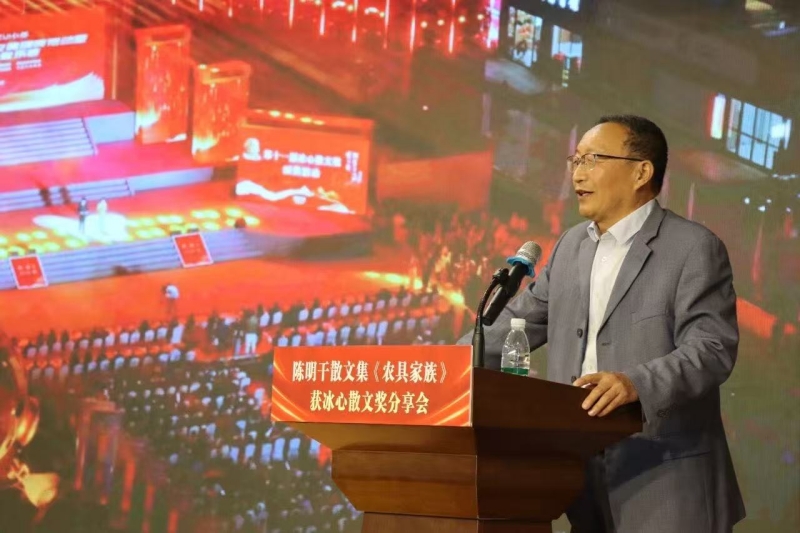 10月30日,第十一届冰心散文奖颁奖典礼在贵州遵义仁怀市举办,江苏泰州兴化市作家陈明干凭借其散文集《农具家族》斩获冰心散文集奖。11月10日,陈明干带着获奖作品,在家乡兴化市大邹镇举行分享会,以“农具”为钥,讲述家乡的农耕记忆,与读者一起赴一场乡土文化之约。