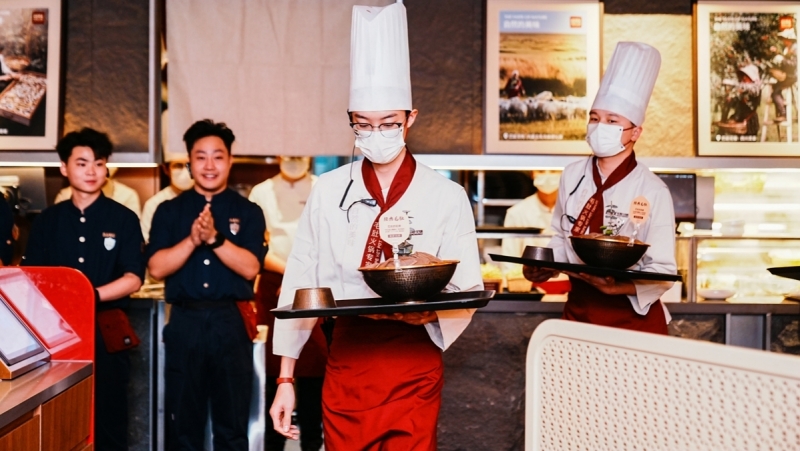 在食品安全与品质把控上,巴奴的创新实践备受关注。品牌早年便率先采用木瓜蛋白酶嫩化技术,替代传统火碱发制工艺,既保证了毛肚脆嫩的口感,又彻底解决了行业食品安全痛点。此次首店开业,新西兰冰鲜毛肚、井水黄豆芽、鲜鸭血等12款经典菜品全部同步上线,为港城食客带来丰富选择。
