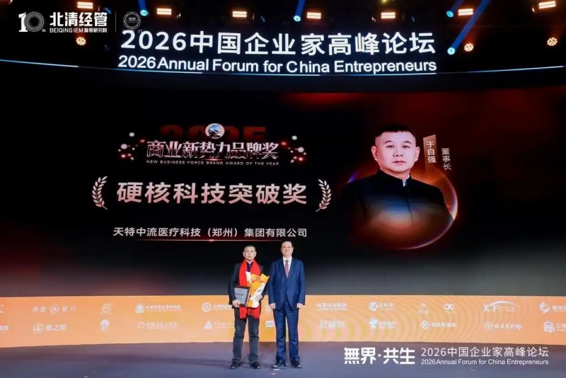 在颁奖环节,天特中流医疗科技(郑州)集团有限公司(下称“天特中流集团”)凭借肿瘤无创干预领域的技术研发与应用成果,获评“硬核科技突破奖”。科技部原副部长吴忠泽出席颁奖仪式,为企业授奖。天特中流集团创始人、董事长于自强现场接受奖项。据介绍,于自强为医疗管理博士,硕博连读于法国巴黎PPA高等商学院医疗管理专业,曾任新加坡南洋理工大学高级访问学者,长期深耕肿瘤无创治疗技术产业化领域。其在新加坡南洋理工大学期间完成的肿瘤无创治疗跨学科研究成果,为相关技术落地提供了理论支撑。