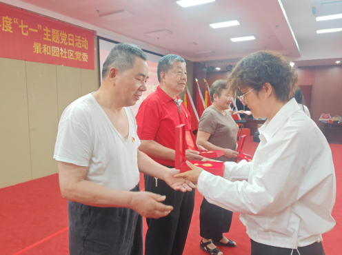 活动开始,社区党委书记洪玲带领全体党员开展中央八项规定精神学习,要求大家要从思想上正本清源、固本培元,切实将学习成果转化为践行初心使命的实际行动。随后,社区党委为5名老党员颁发“光荣在党50年”纪念章。老人们手握纪念章感慨万千,五十年党龄浓缩在一枚沉甸甸的纪念章中,他们衷心期望年轻一代能勇挑时代重担,用自身奋斗为党旗增光添彩。