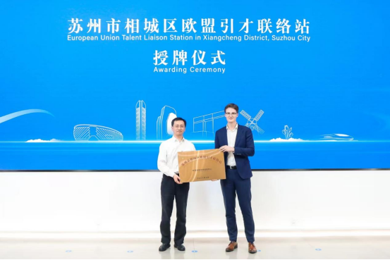 市人社局副局长田嘉勇为中荷离岸协同创新中心授牌“苏州市相城区欧盟引才联络站”。当前,相城正积极布局全球化引才战略,先后在澳大利亚、美国、德国、日本、以色列、荷兰6个国家建立海外引才联络站,大力加强同海外高端人才项目的深度对接。中荷离岸协同创新中心专注于创新创业服务以及构建苏州-荷兰双边合作桥梁,已引进了多个海外项目。为进一步强化同欧盟人才和优秀创新创业项目资源的有效链接,相城区依托中荷离岸协同创新中心成立欧盟海外引才联络站。