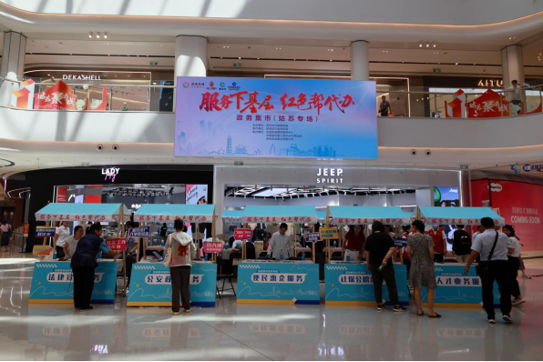7月12日,在首开龙湖苏州胥江天街中庭,有一群特殊的“摊贩”,他们现场摆放设置了市场准入、交通运输、法律宣传、公安政务、社保公积金等10个服务摊位,向现场群众发放宣传资料,讲解惠民利企相关政策,开展办理注册登记、社保公积金、出入境、交通运输等业务咨询服务。据了解,这是苏州市行政审批局联合姑苏区行政审批局、姑苏区沧浪街道便民服务中心,通过“三级联动、帮办代办”举措,开展的首期“服务下基层 红色帮代办”政务集市(姑苏专场)活动。