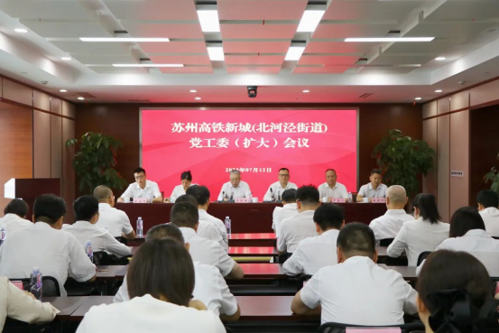 7月12日,苏州高铁新城(北河泾街道)召开党工委(扩大)会议,传达学习习近平总书记考察江苏重要讲话精神,对苏州高铁新城(北河泾街道)学习贯彻工作进行动员部署。