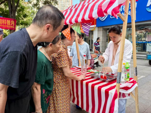 9月是全国科普月,景和园社区新时代文明实践站联合迈皋桥街道科协开展“街头趣味实验室”科普活动,让辖区居民在有趣的科学小实验中感受科学的魅力。社区科普志愿者在装有小苏打的瓶中倒入几滴白醋和红色食用色素,原本静止的瓶内瞬间涌出红色泡沫,如火山岩浆喷涌而出,视觉效果震撼。