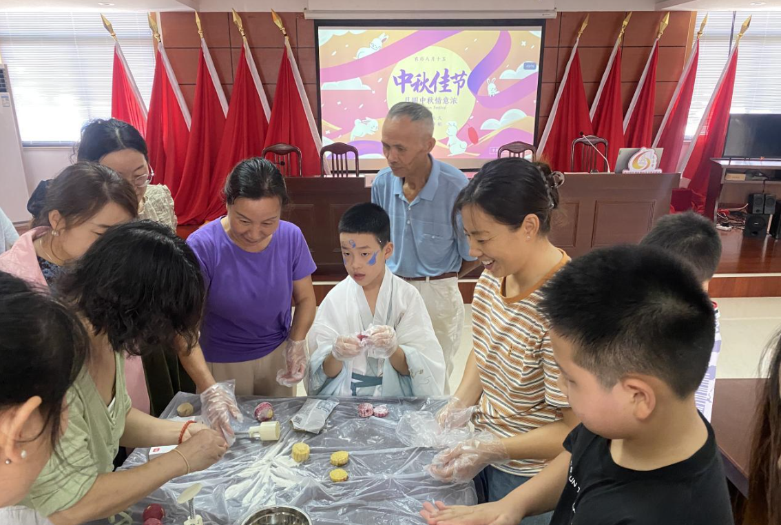 中秋逢国庆,家国共团圆。阳江镇东湖村新时代文明实践站组织开展了“团圆迎中秋,巧手做月饼”主题亲子活动,与辖区村民一起制作月饼,共度佳节。在志愿者的协助下,称重、和面、揉面、分团、包馅、压模……大家互相协作,相互交流,孩子们也忙得不亦乐乎,跟随志愿者们学习,整个制作过程充满了欢声笑语,不仅让参与者体验了传统美食的制作乐趣,更感受到了浓浓的邻里情和协作的快乐。