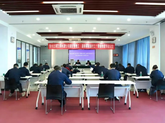 公司高度重视本次认定工作,将其作为人才培养的重要抓手,统筹谋划、周密部署。人力资源部、调度运行部与泵站技能学院密切协作、高效联动,形成贯穿全程的组织保障合力。此次认定采用“理论考试+实操考核+综合评审”三位一体的多元评价体系,全面检验员工的岗位胜任能力与专业水平。技能操作考核紧密围绕岗位实际需求,通过现场实操重点评估员工在职业操作技术方面的熟练度与规范执行能力;针对技师与高级技师申报人员,综合评审环节通过审阅申报材料、现场授课与专业答辩相结合的方式,对其综合能力进行全面评议。为切实维护认定的公信力与权威性,各环节均严格遵循上级有关要求,并特邀行业资深专家担任考评员,对考生表现进行客观、公正的评价。