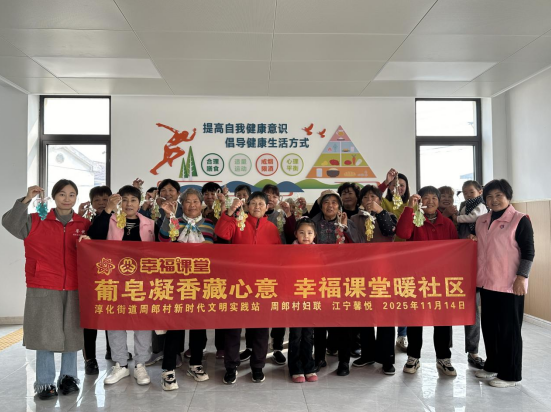 11月14日,冬日的寒意并未冷却周郎村村民们的热情,南京市江宁区淳化街道周郎村新时代文明实践站内暖意升腾,一场以“葡皂凝香藏心意 幸福课堂暖社区”为主题的手工葡萄皂创意活动在这里温馨开启。二十余位村民满怀兴致地齐聚于此,准备在“幸福课堂”的欢乐氛围中,开启一场充满趣味与温情的手工体验。