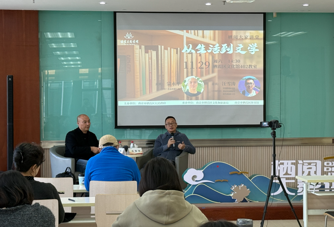 11月29日,《中国作家》纪实版副主任汪雪涛、《十月》杂志副主编宗永平走进栖霞区“栖阅大家讲堂”活动,共同围绕“从生活到文学”主题,为读者带来一场精彩的分享会。