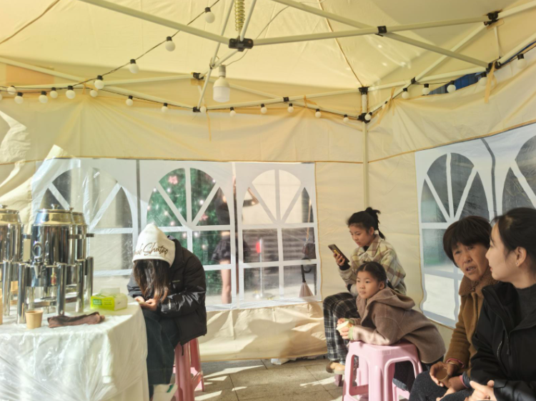 队伍已经排成了长龙,长达三四百米。一旁的免费茶水供应处,不断在续水,工作人员正忙着打包奶茶和桃酥,整箱整箱地出货。“前几天取号,但从今天开始,为了防止黄牛,我们按照人脸识别,先到先得,一个人不超过12杯。”工作人员小张擦了擦汗,忙着维持秩序。