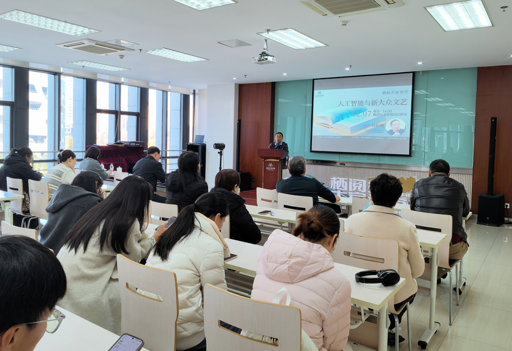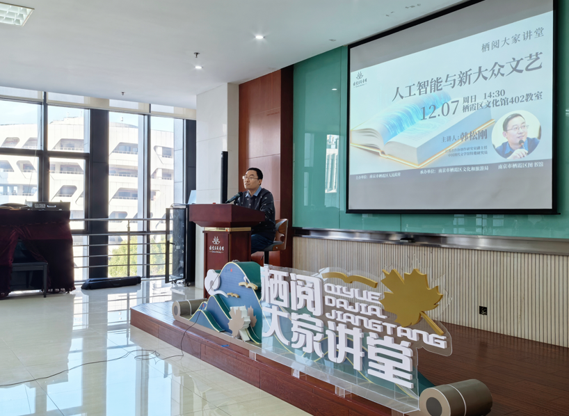 12月7日,江苏省作协创作研究室副主任、85后茅盾文学奖评委韩松刚走进栖霞区“栖阅大家讲堂”活动,以“人工智能与新大众文艺”为主题,为读者带来一场精彩的分享会。