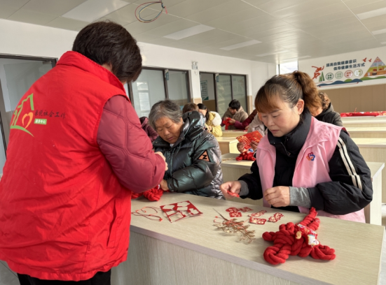 活动现场,志愿者们提前准备好编结材料,耐心地向大家讲解编结的技巧和寓意。村民们凭借丰富的生活经验,迅速掌握了编结要领,手法娴熟地编织着,不一会儿,一个个精美的中国结、寓意吉祥的福袋便在他们的手中诞生。村民们也不甘示弱,认真学习、积极尝试,遇到困难时,大家互相帮助解决,现场氛围温馨融洽。