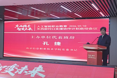 南京信息职业技术学院党委书记孔捷在发言中指出,人工智能正深刻重塑生产方式与人才需求结构,职业教育需肩负起培养智能时代“数字工匠”的使命。学校自2017年成立人工智能学院以来,通过构建“AI同心圆”专业群布局,聚焦人工智能赋能教学改革方向,经过多年探索与实践,已形成“智融课程、智塑平台、智变课堂”的教学改革成果。该成果将依托东西部对口援建协作平台进行辐射推广,有望切实提升西部高职院校人工智能教育教学水平。他表示学校将全力投入,与西部院校携手共建人工智能职业教育协同发展新生态。