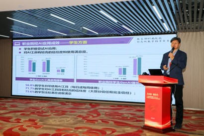 大会还设立“AI赋能教学工作交流”环节,新疆农业职业技术大学信息技术学院院长杨功元,江苏海事职业技术学院质量管理处、智慧校园建设处处长陈永等6位院校、企业代表分别围绕“人工智能+职业教育”主题,从专业建设、教学改革等多个维度分享了创新案例与深度思考。