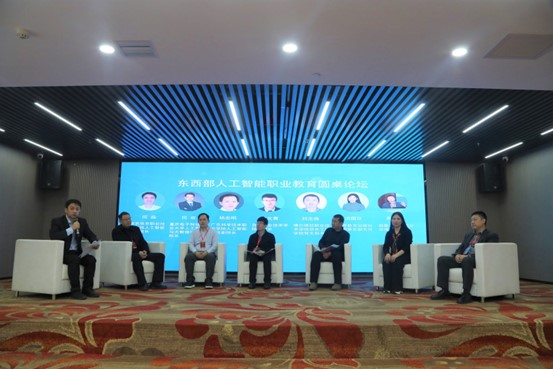 在“东西部院校院长(系主任)圆桌会议”环节,西藏职业技术学院副校长陈文青、广东科学技术职业学院人工智能学院副院长杨忠明等7位院校及企业负责人,聚焦师资建设、课程开发、平台搭建与机制创新等关键议题展开深入对话,共同勾勒出人工智能教育东西部协同发展的清晰图景。