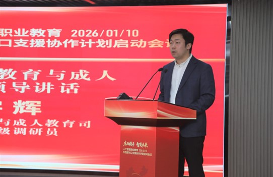 教育部职成司教学与质量处四级调研员李宇辉在讲话中强调,本次协作计划是落实国家教育数字化战略、促进教育公平、推动人工智能与职业教育深度融合的关键举措。他对计划落地提出三点要求:一是聚焦实效,推动共建共享,精准对接西部院校需求,整合东部优质资源与企业技术成果;二是赋能提质,增强内生动力,通过系统化培训与结对共建,培育西部本土化骨干师资队伍;三是示范引领,打造协作样板,形成可推广的实践经验,构建“东西联动、校企协同、教研一体”的可持续发展机制,为全国职业教育人工智能应用提供示范样本。