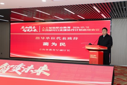 青海省教育厅副厅长蔺为民在讲话中强调,对教育部及对口支援院校长期以来给予青海职业教育的支持表示诚挚感谢,并指出,在教育部统筹推进下,“组团式”帮扶机制有力推动了青海职业教育实现跨越式提升。本次协作计划的正式启动,不仅为西部职业教育高质量发展注入了强劲动能,更标志着东部优质教育资源系统性赋能西部职业院校的新篇章全面开启,将对提升西部院校人工智能技术适应能力与整体办学水平产生重要影响。