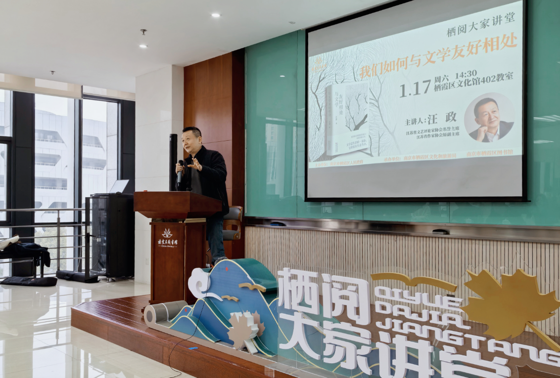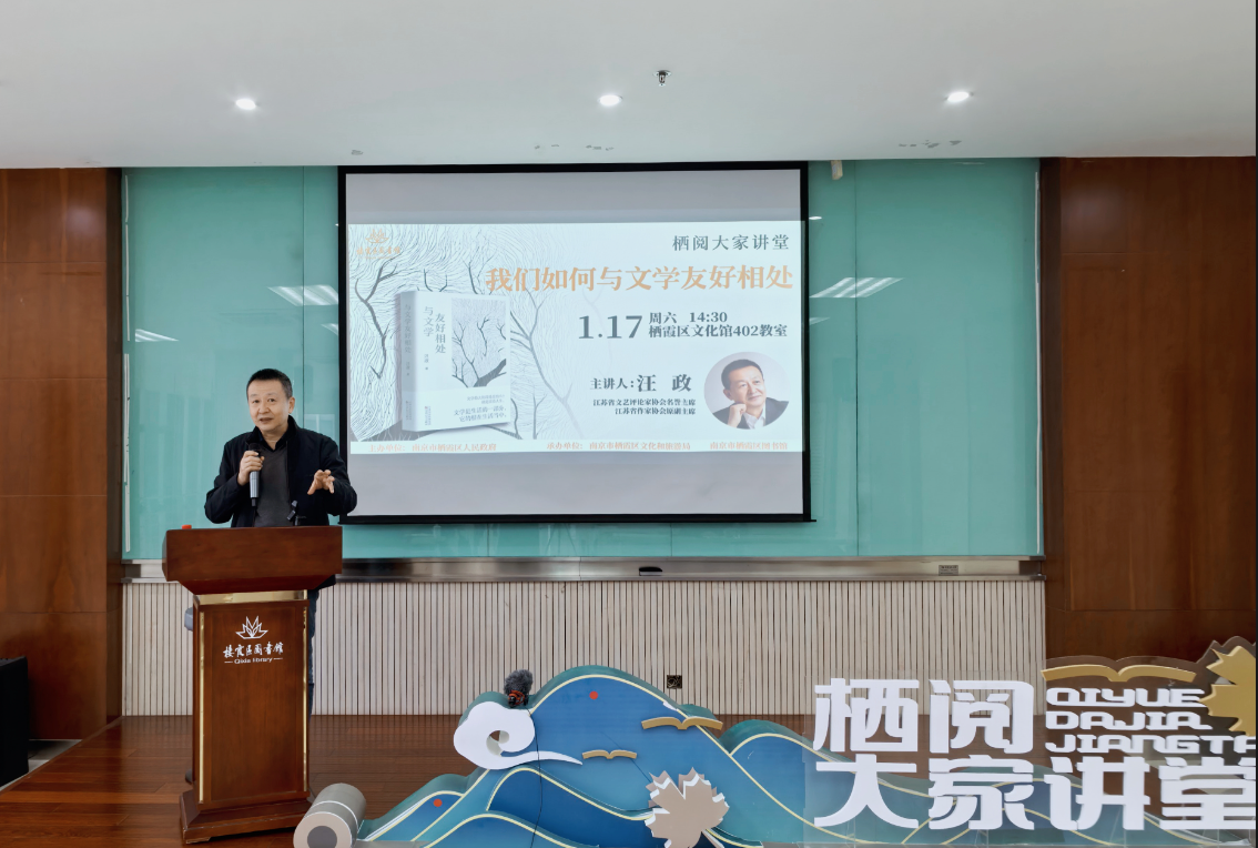 1月17日,中国作协政府批评委员会副主任、江苏省文艺评论家协会名誉主席汪政携最新评论集《与文学友好相处》走进栖霞区“栖阅大家讲堂”活动,以“我们如何与文学友好相处”为主题,为读者带来一场精彩的分享会。