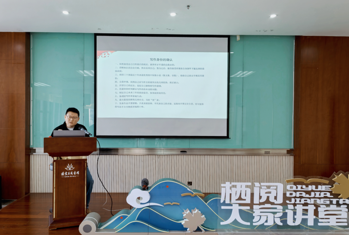 1月24日,诗人、《江苏作家》副主编、“紫金文化人才培养工程”文化优青朱军走进栖霞区“栖阅大家讲堂”活动,以“当我们谈论文学性时,我们在谈论什么”为主题,为读者带来一场精彩的分享会。
