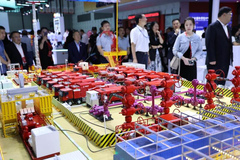 展厅中央,中国石化“应龙”Idrilling科学钻井系统高举钻臂,数米开外,中国海油“注热一号”移动平台模型闪着海蓝色微光;左手边,沈鼓180万吨乙烯压缩机组“排排坐”,50余项关键突破被标注成一条“创新时间轴”。