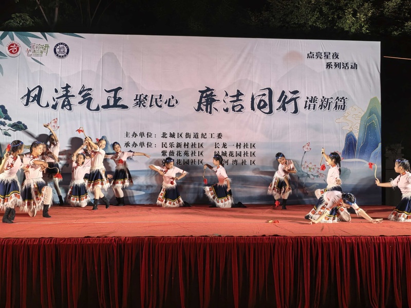 活动在《太阳出来喜洋洋》的欢快舞步中圆满落幕。此次党群联谊活动以社区舞台为生动载体,以点亮星夜的方式用故事传递廉洁理念,借舞姿诠释浩然正气,以歌声凝聚向善力量,让“廉洁”从文本走向生活,“风清气正”化为可感场景,正是社区党组织强化党建引领、厚植廉洁文化的生动实践。下一步,北城区街道将持续推动廉洁文化深度融入日常、扎实落到实处,携手擦亮“廉洁自律、邻里互助”的社区底色,共建“党风正、民风淳、邻里和”幸福家园。