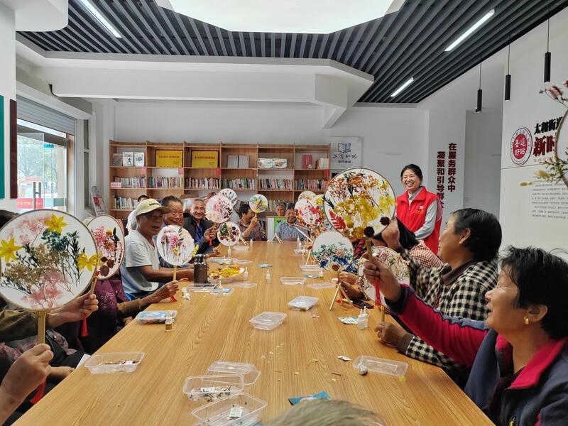 “团扇摇摇,美人袅袅”。在漫岗社区,“指尖生花 扇韵中秋”团扇手作活动拉开帷幕。10余名居民从绷扇面、调颜料学起,在素白的团扇上粘贴山水、花鸟、中秋月等传统图案。居民陈阿姨特意选择了“嫦娥奔月”题材,她表示:“平时喜欢画画,但在团扇上创作还是第一次,这种传统艺术形式特别有韵味。”