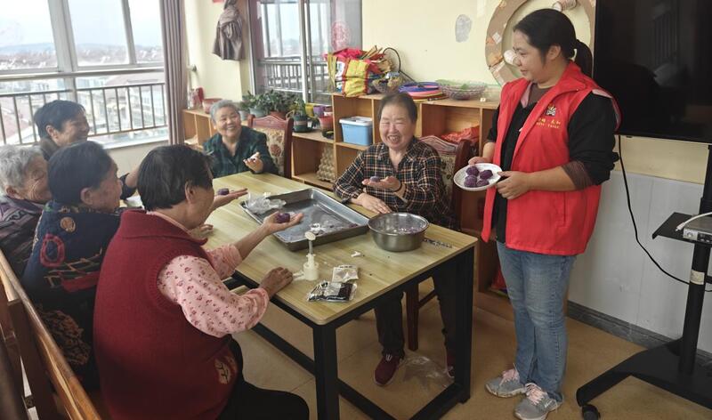 “来,张奶奶,您试试这个冰皮面团,手感特别软!”在三塘社区,志愿者们走进“枫林晚”养老院,与20余位老人共度“冰皮月饼DIY”快乐时光。活动中,志愿者提前准备了糯米粉、豆沙馅、水果酱等食材,老人们围坐在一起,揉面团、包馅料、压花成型,动作虽缓却十分专注。82岁的李奶奶笑着说:“这辈子吃过不少月饼,但自己做还是头一回,这味道肯定不一样!”
