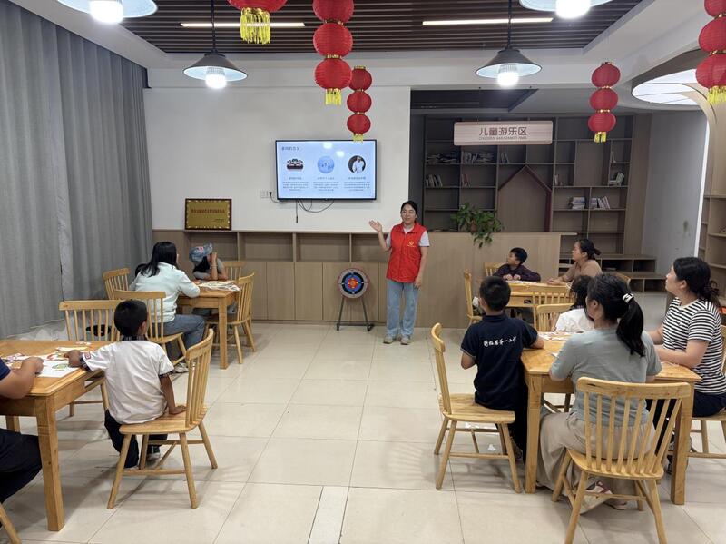 活动伊始,社区志愿者以“中秋好家风”为主题展开宣讲。她结合中秋“团圆”“感恩”的文化内涵,通过生动的家庭故事,引导家长与孩子们感悟家风家训的传承意义,强调“孝亲敬老”“勤俭节约”等传统美德在现代家庭中的实践价值。孩子们认真聆听,不时与家长相视点头,现场氛围温馨而庄重。