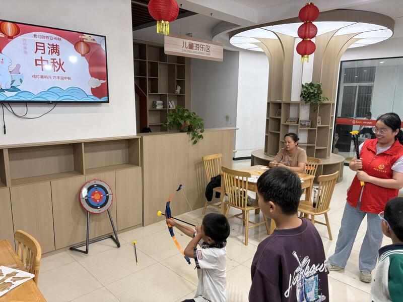 随后的“挽弓射月”趣味游戏中,孩子们化身“小射手”,在家长的指导下拈弓搭箭,瞄准箭靶练习射击。每位小朋友拥有三次射击机会,随着箭矢离弦、环数累加,现场欢呼声此起彼伏。经过激烈比拼,最终评选出前三名“神射手”,社区工作人员为他们颁发了精美文具礼盒作为奖励。游戏不仅锻炼了孩子们的手眼协调能力,更让他们在竞技中体验了传统民俗的乐趣。