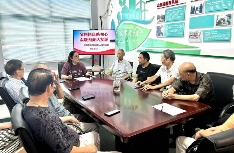 东珠新村社区召开“庆国庆 迎中秋”退休人员暨离退休老干部、老同志座谈会,与退休人员欢聚一堂,同忆昔日砥砺岁月,共绘未来发展新篇。活动伊始,社区党总支书记黄静向与会人员简要汇报了近期社区在党建引领、民生服务、环境整治、文化建设等方面的工作情况与取得的成果,邀请老同志们畅所欲言共同谋划社区未来的发展规划。随后,与会人员纷纷畅所欲言,围绕养老服务、医疗健康、文体活动、邻里关系、社区安全等切身相关的话题提出了中肯的意见和建议。活动最后,工作人员详细记录了每一位老同志的发言,并就部分可以现场回应的问题进行了解答,会后将对与会人员的发言进行认真梳理研究,将其作为改进工作、提升服务的重要参考。