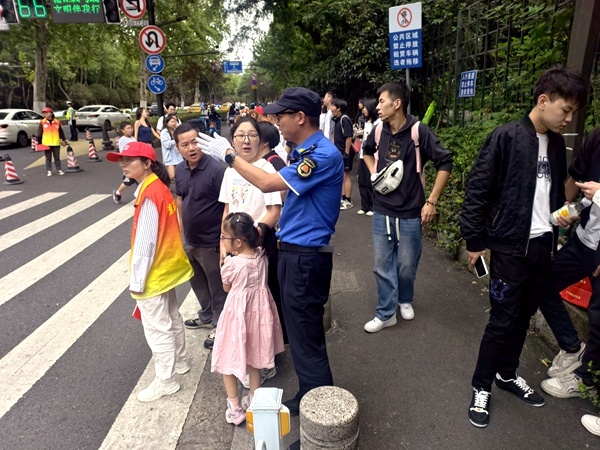 针对中山陵风景区10月1日起实施的车辆限行政策,玄武区城管局将地铁口管理列为重中之重,牵头负责苜蓿园、孝陵卫等多个点位保障,每个点位安排6-10人,由执法人员任点位长,每日早8时至晚18时在岗,中午无休。执法人员不仅劝离游商摊贩、制止倚门出摊,还联合街道引导非机动车有序停放;停车办提前协调单车企业,在地铁口部署运维车辆,日均清运维护共享单车1.5万台次,同步加派环卫力量,确保沿线环境整洁。