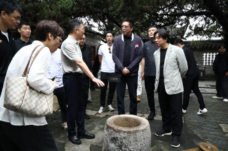 10月3日,中国书法院名誉院长、江苏省篮球运动协会名誉会长管峻,江苏省篮球运动协会副会长兼秘书长张世林,中国篮球名人堂成员、江苏省篮球运动协会副会长胡卫东携张成、唐正东等江苏男篮“黄金一代”球员一行到访汤沟酒业。灌南县委宣传部常务副部长、县文体广电和旅游局局长徐茂干,汤沟酒业党委书记、董事长朱耀汇陪同参观。