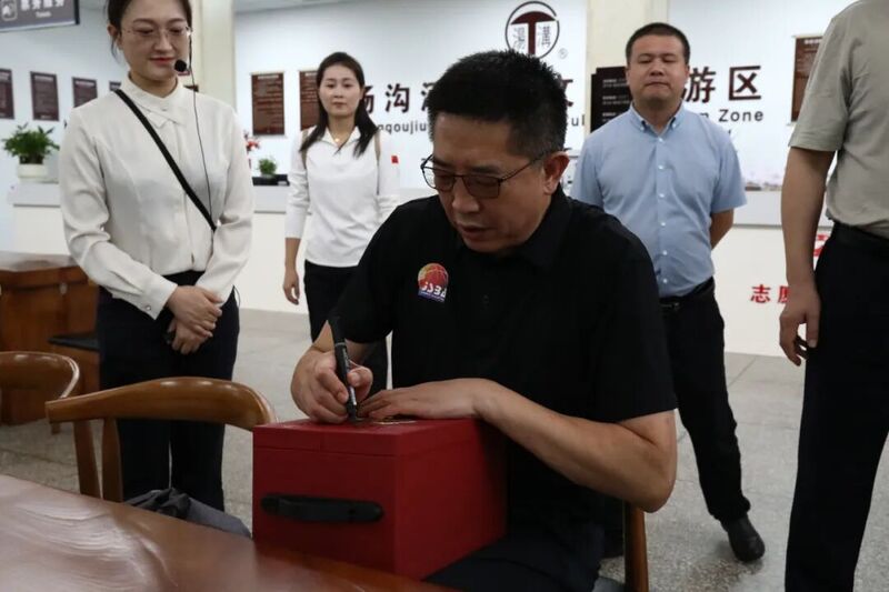 管峻院长、篮球名宿胡卫东在汤沟开坛节酒上签名留念,签名酒将成为本次体育精神与汤沟酒文化跨界交流的珍贵见证,承载着体育与酿酒文化交融的美好记忆。