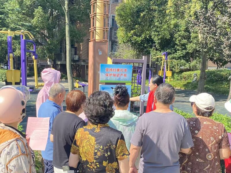 社区志愿者围绕中心小花园的“扫黄打非”宣传板,向驻足的居民详细讲解“什么是‘扫黄打非’”“非法出版物的危害与识别方法”以及“不良网络信息的防范技巧”等知识。同时,社区结合真实的盗版书籍案例,深入剖析非法出版物对青少年身心健康和社区文化氛围的负面影响。居民听得认真,不时俯身仔细查看宣传板上的细节。居民提问,志愿者耐心地解答,有效调动了居民参与社区文化治理的积极性。