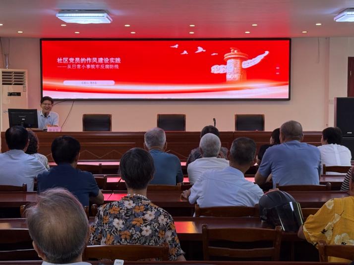 各社区坚持将理论学习作为廉政建设的基石,通过系统化、多层次的学习教育,引导党员干部从思想深处拧紧“总开关”。城河新村社区特别邀请了南通百姓名嘴陈永生老师进行专题授课。陈老师以“基层党员如何算好廉政账”为核心,紧密结合低保审核、民生项目推进、矛盾调解等日常工作的廉政风险点,通过剖析本地真实案例,对照相关条款,将抽象的纪律要求转化为具体、可感的行为指南,现场互动热烈,有效解答了党员们在工作中遇到的现实困惑。