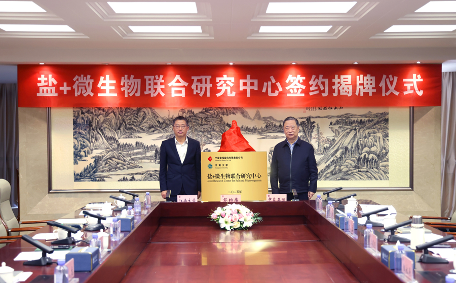 10月29日上午,由中盐金坛公司与江南大学共建的“盐+微生物联合研究中心”签约揭牌仪式在江苏无锡举行。中盐集团党委书记、董事长李耀强,江南大学党委书记吴正国,中国工程院院士、江南大学校长陈卫出席仪式并致辞,副校长刘龙主持仪式。