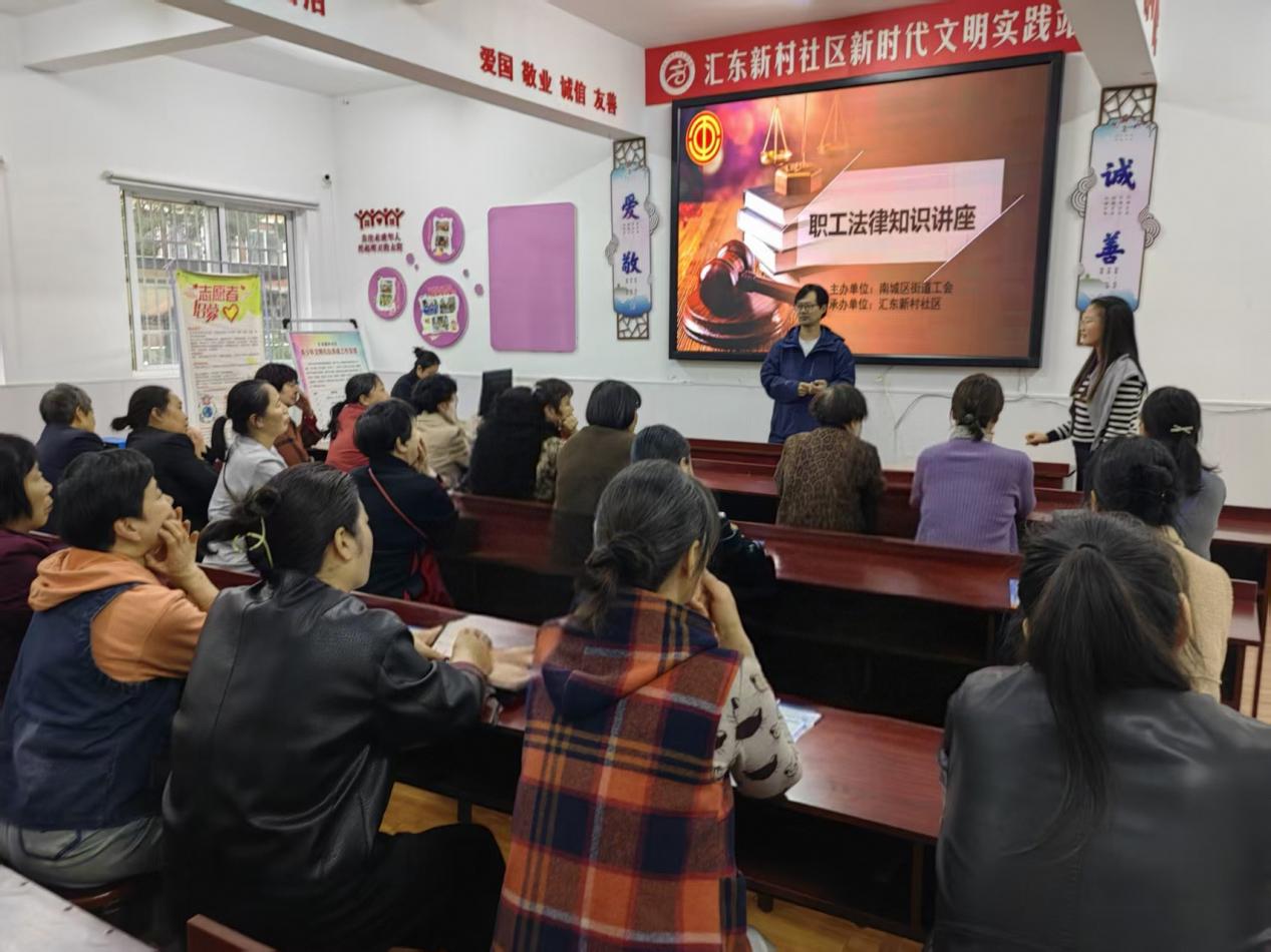为切实维护职工合法权益,帮助职工提升法律素养、增强维权能力,南城区街道工会联合汇东新村社区精心组织开展职工法律知识宣讲活动。活动现场特别邀请专业法律顾问,围绕《劳动法》《劳动合同法》《工会法》等与职工工作生活息息相关的法律法规,结合职场中常见的欠薪纠纷、合同纠纷、社保缴纳等真实案例,用通俗易懂的语言深入浅出地讲解劳动合同签订要点、合法权益维护途径、劳动争议解决流程等热点问题。