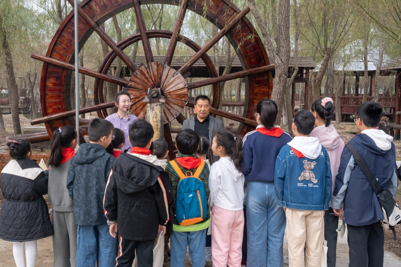 阅读的最终目的是理解与传播。围坐聆听非遗代表性项目传承人讲述与水车有关的岁月故事,是“读城”行动中最富温情的“聆听阅读”。故事里流淌的,是城市的精神血脉与匠人情怀。在非遗代表性项目传承人的带领下,学子们仔细观察水车的轮轴、辐条、水斗等结构,探究其使用的木材与铁件材质,与传承人深入探讨其利用水流惯性、齿轮啮合将水从低处送往高处的物理学原理……这一刻,他们不再是走马观花的游客,而是带着任务的深度探索者;水车不再是一个静止的景观,而是一本立体的、充满智慧的“活”百科全书。