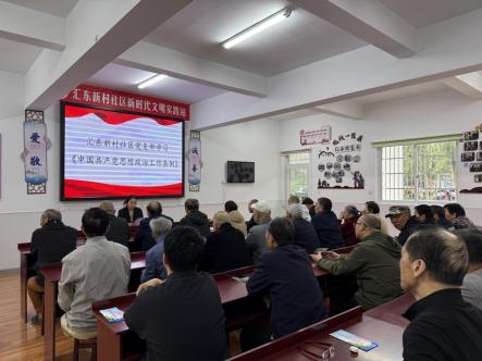 10月21日,汇东新村社区党支部组织党员开展十月主题党日,深入学习江苏抗日根据地共产党人的英雄事迹。活动以“集中观看+交流研讨”的形式,组织学习《中国共产党思想政治工作条例》,并收看《八秩荣光——江苏抗日根据地共产党人》党员教育电视片。影片《每闻潮声思宋公》《湖西人民的好专员》等篇章,生动再现了革命先辈在艰苦环境中坚守信仰、浴血奋战的感人故事。