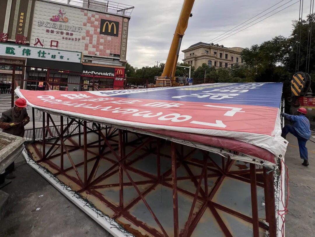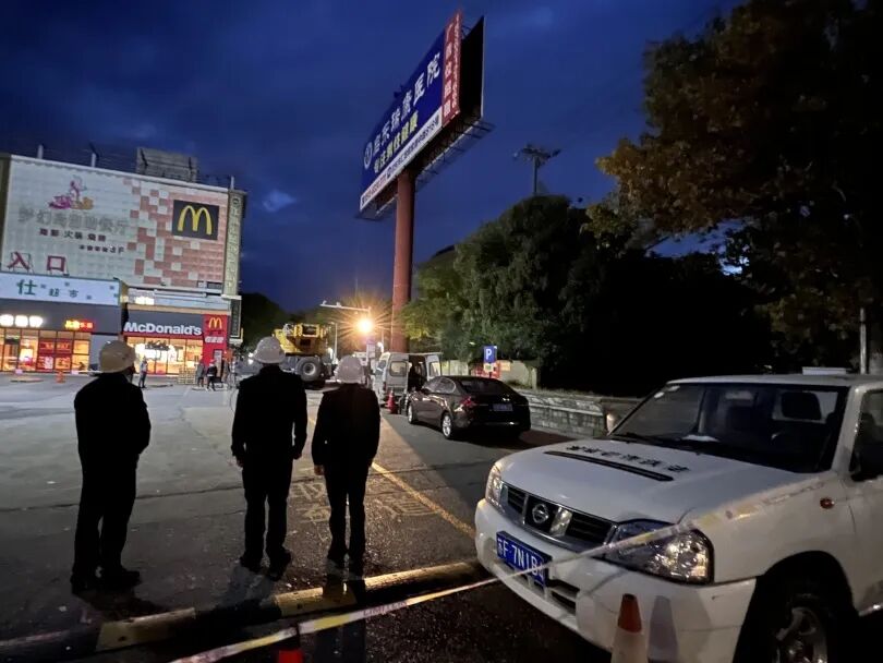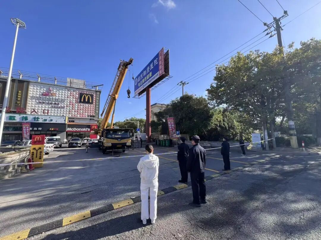 位于申港城的一处大型高炮广告牌存在牌面破损、钢架锈蚀等情况,考虑到申港城购物中心人流量大、出入口密集,为最大限度减少对市民出行和商户经营的影响,城管部门将拆除时间定在凌晨。前期与物业、商户反复沟通协调,提前完成车位清场、警戒设置;拆除现场,执法队员全程值守,疏导群众、指挥交通,确保施工区域秩序井然。整治过程中,多家企业也积极响应,某广告传媒公司负责人直言:“新兴媒体崛起后,传统高炮广告市场需求萎缩,还得承担高昂维护和安全鉴定成本,转型数字化传播已是必然。”目前,多家企业已签订帮拆协议,主动配合拆除过期高炮设施,助力城市品质提升。