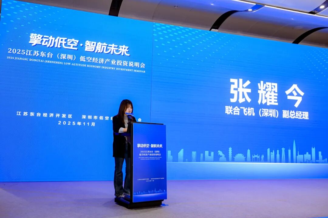 副市长、区党工委书记韩翠兰致辞。联合飞机集团副总经理张耀今介绍东台项目投资进展。高巨创新、高度创新、天空汽车等企业负责人聚焦无人机研发制造运维,分享前沿技术与经验。深圳市低空经济产业协会秘书长成涛作“低空产业政策创新、生态构建与场景实践”专题分享。
