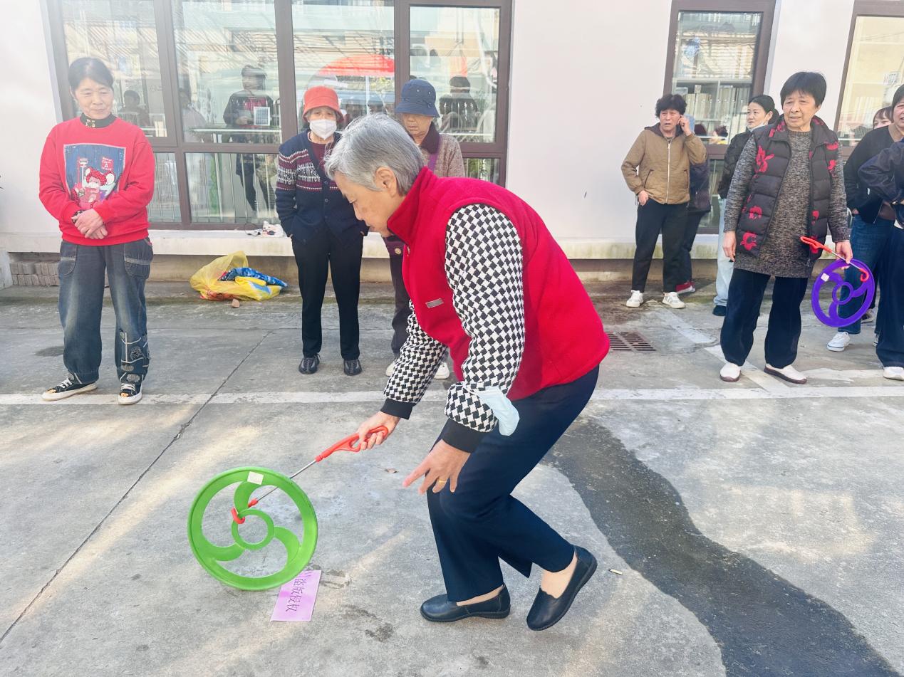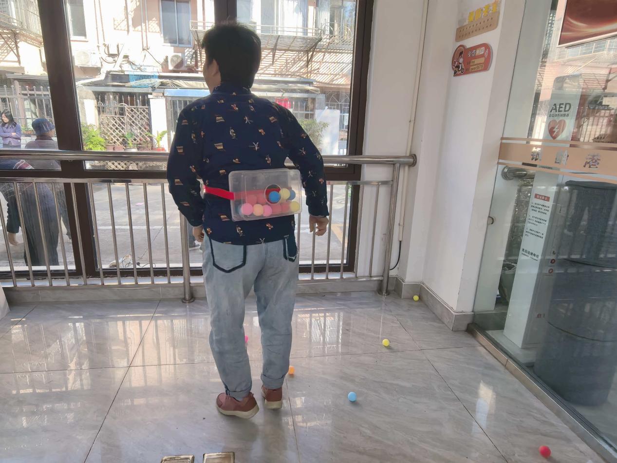 “各就各位,开始!”随着裁判的一声哨响,“无敌风火轮”的两支队伍脚踩“履带”同步前行,大家眼神专注、口号整齐,“一二、一二”的节奏声在赛场此起彼伏,默契配合的身影里满是邻里温情;“珠行万里”赛场上,首名队员轻轻地将小球放入槽中,微微倾斜轨道,等待下一位队员的精准衔接直至最后一名队员成功将小球送到终点,整个队伍瞬间欢呼雀跃,纷纷击掌庆祝,大家在欢声笑语中感受到了团结协作的力量。