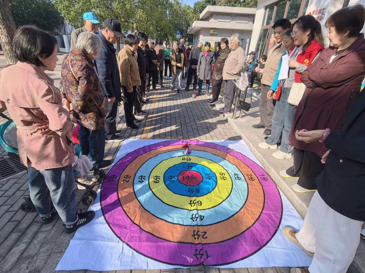 “阅读的打开方式有哪些?”“我们附近有哪些阅读设施?”居民通过正确回答全民阅读相关问题,即可获得投掷沙包的机会。大家或独自思考,或相互讨论,在一问一答过程中掀起了大家学习的热潮。拿到沙包的居民更是兴致高昂,瞄准、投掷、动作一气呵成,“中了!中了!”当沙包精准落入对应的区域,吴阿姨开心地鼓起了掌,“在互动过程中,我学到了好几种简单易行的养成阅读习惯的好方法,这种方式太适合我们这些退休人员了,回去我得给家人科普下今天学到的知识。”