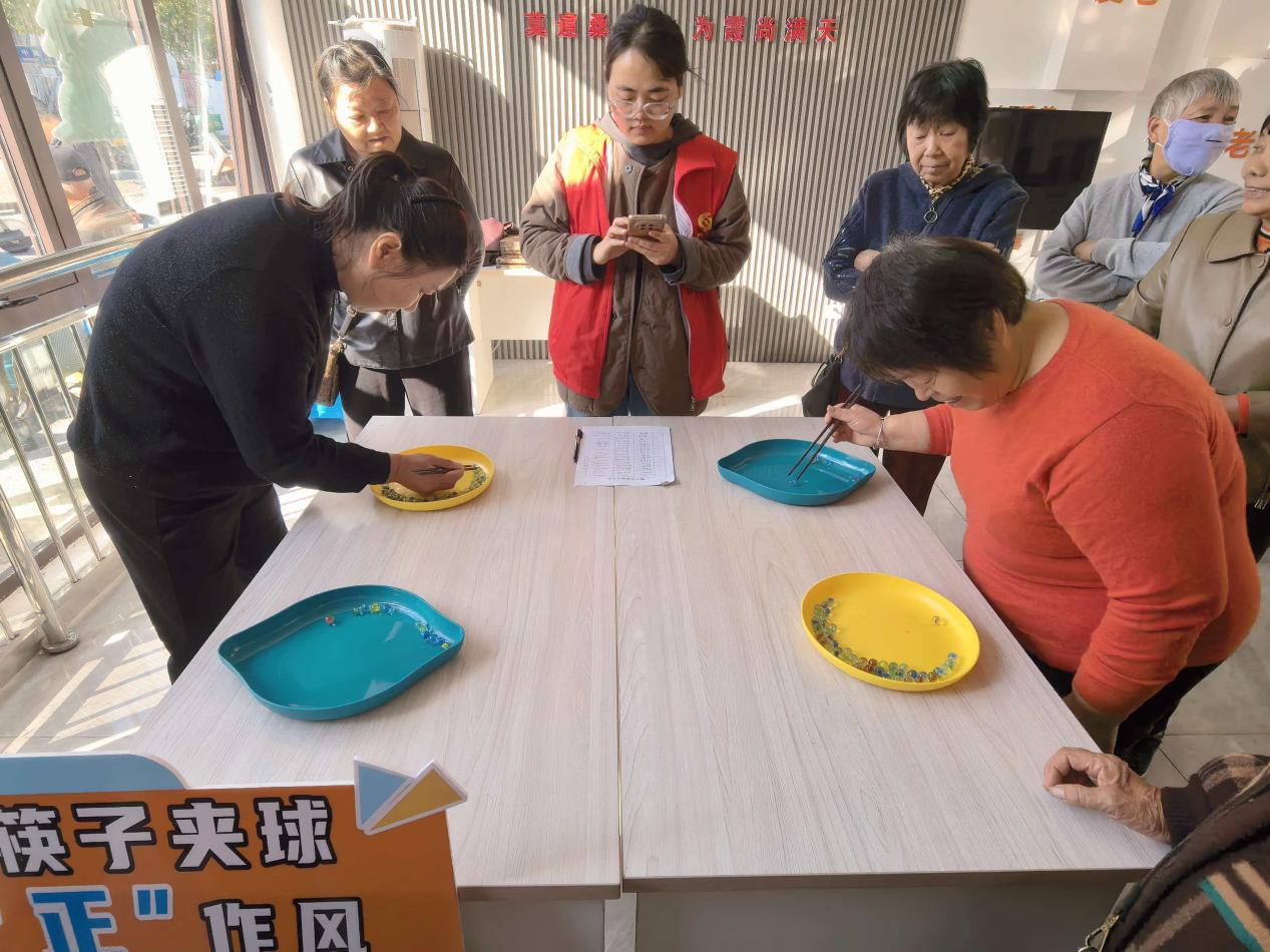 为筑牢社区廉洁根基,让廉洁之风浸润人心,本次网格趣味运动会将廉洁文化融入到多项游戏之中,让居民在活动中感受到廉洁力量。在“袋鼠跳”方阵,居民穿着袋鼠服,蹦跳着冲向印有“廉洁奉公”“清白做人”等标语的终点牌,每一步跳跃都象征着“向廉洁看齐”;套圈环节,一个个标签着“拒绝享乐主义”“拒绝官僚主义”等字样的道具整齐排列,参赛者专注瞄准、精准地套向目标。套中者更是大声念出瓶身上的廉洁关键词,如同一份郑重的承诺,将廉洁自律牢牢“锁”在心中;“筷子夹球”则考验耐心与稳度,参与者用筷子将球平稳夹入指定容器,寓意着唯有持之以恒,方能守住初心,守护清廉底色。