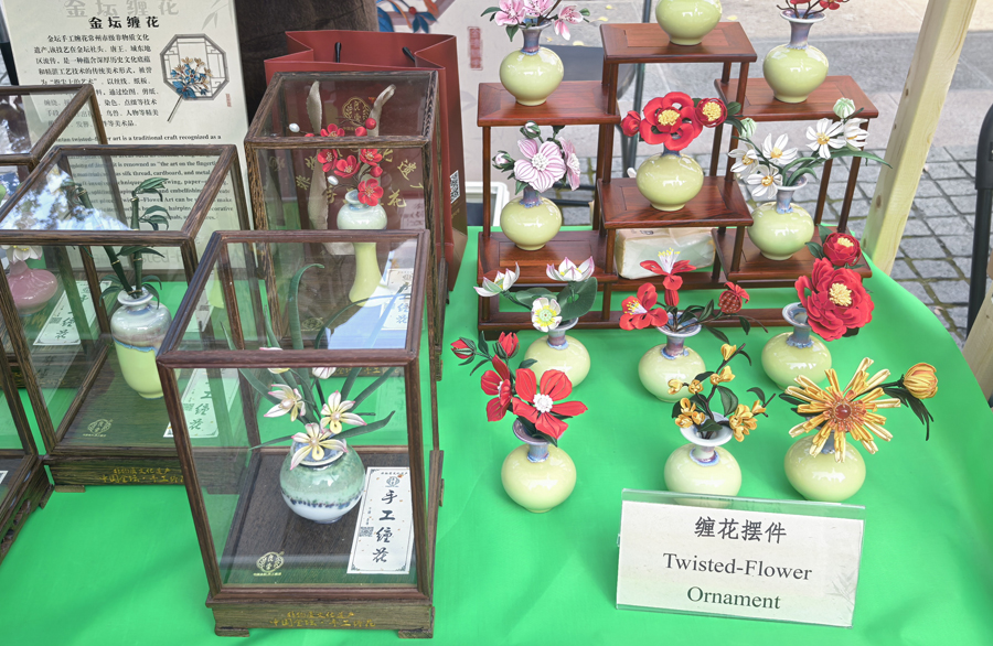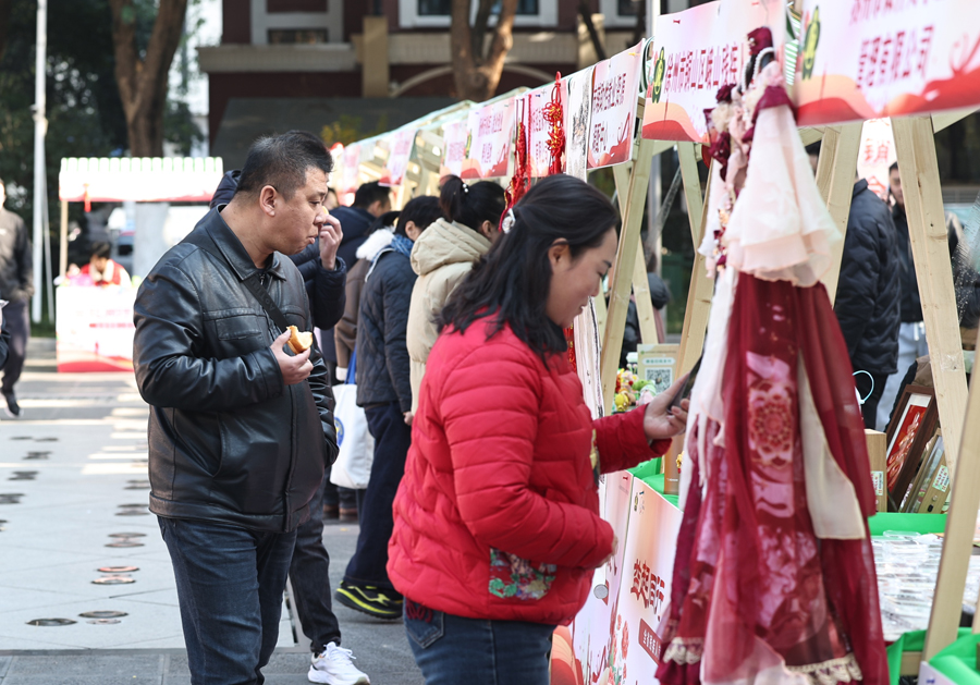 “我们每朵花都有故事,比如这个产品叫‘十二花神’……”“摊主”姚海霞热情地介绍,作为非遗传承人,她通过缠花技艺带动30余名残疾人就业。