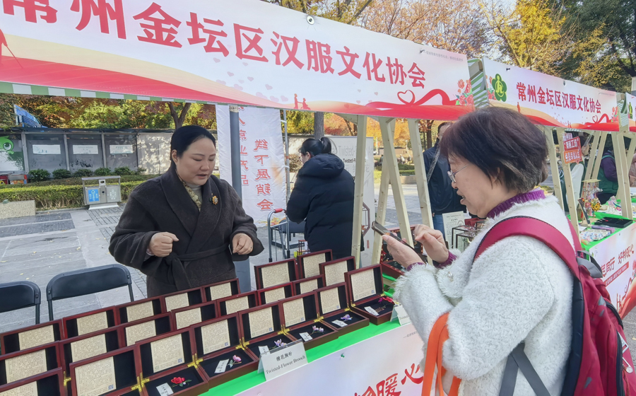 “这个金坛缠花太精美了!”在常州展区前,市民李女士指着一个小巧的缠花发簪赞叹不已。