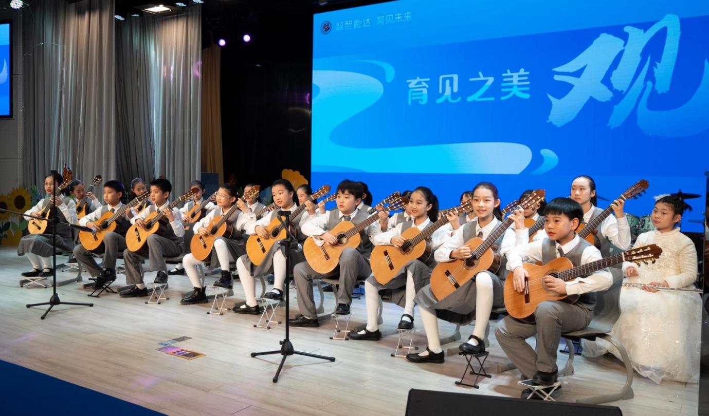 活动伊始,南师大附小铁北新城分校古典吉他社团与合唱社团的孩子们带来了暖场表演《音乐是好朋友》。这是两个新成立社团的首次登台,清澈的童声与古典吉他的悠扬弦音交织,传递出真挚的欢迎与纯粹的艺术初体验,为整个活动注入了温暖而活泼的开场氛围。