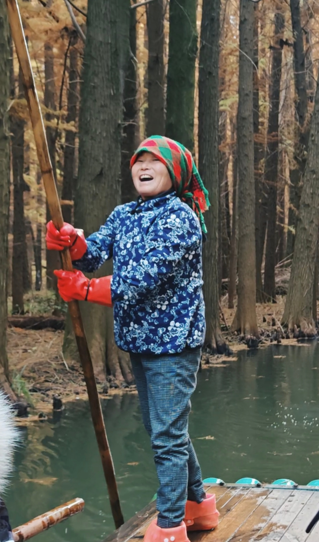 这河道,是藏在水杉林的;这水,是藏在水杉林的河道里的。船像行驶在迷宫里。